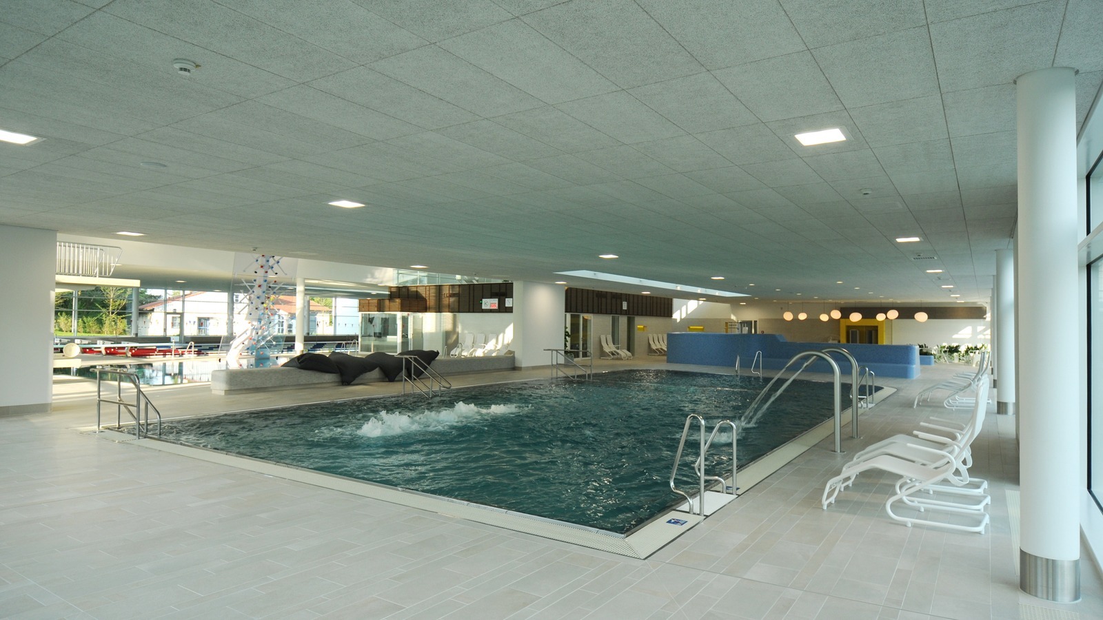 Auf der gesamten Badeplatte werden attraktive Aufenthaltsflächen, Ruhezonen und Wärmebänke angeboten, schwerpunktmäßig im Nichtschwimmer- und Eltern/Kindbereich mit Orientierung in Richtung Süden und Öffnung auf den vorgelagerten Freibereich.