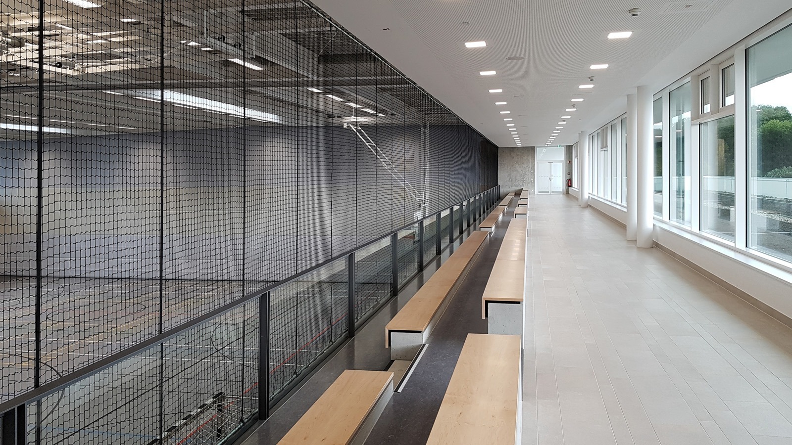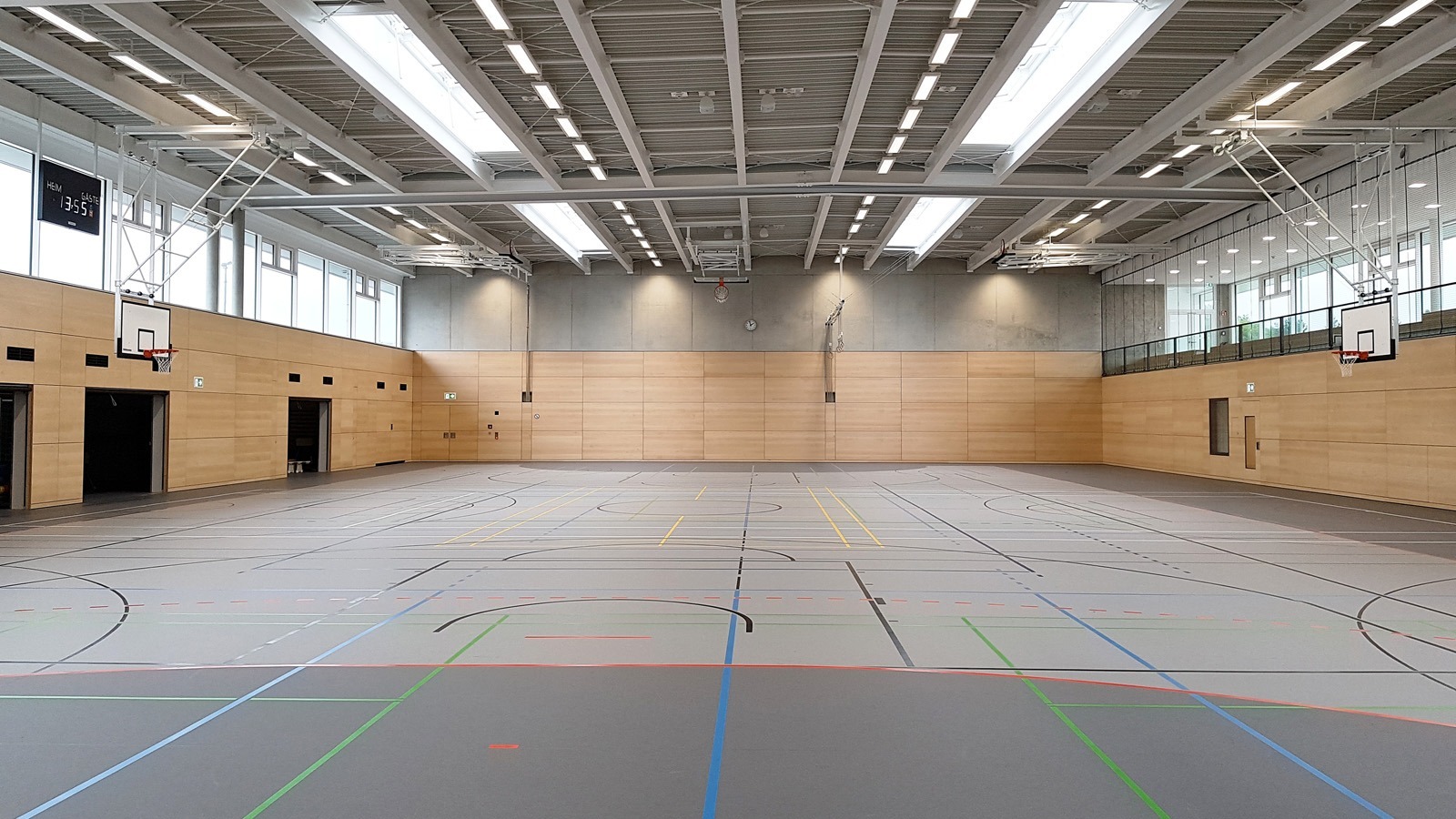 Die Sporthalle wird als klassische Dreifeld-Sporthalle, ergänzt durch ein Angebot aus teilbarem Mehrzweckraum, Konditions-, Schul-/Vereinsraum und einer überdachten Kletterwand im Außenbereich realisiert.