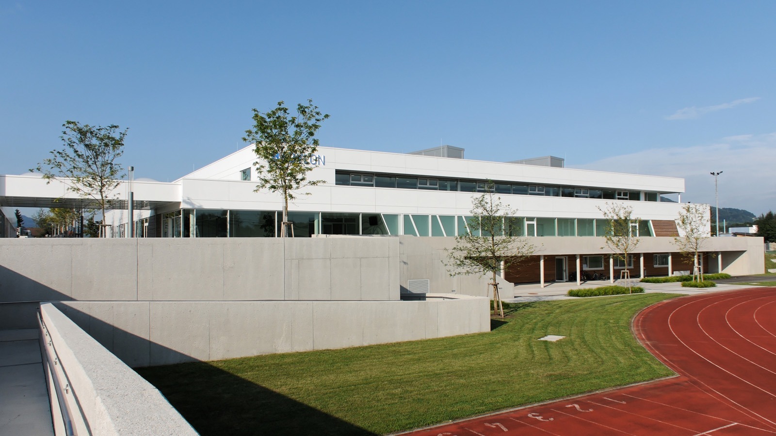 Hallenbad und Sporthalle werden als eigenständig ablesbare Baukörper mit aufeinander abgestimmten Eingangs- und Vorplatzsituationen auf dem Niveau des Campus angeordnet. Durch die aus den Nutzungen abgeleitete Gliederung der Baumassen wird eine angemessene Maßstäblichkeit der Baukörper erreicht.