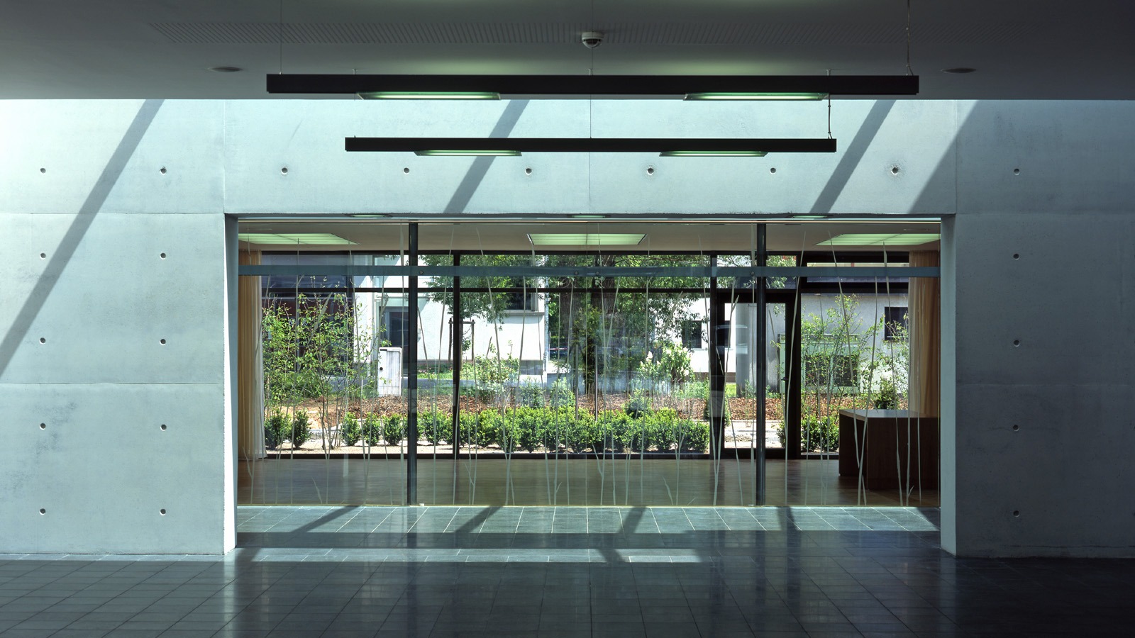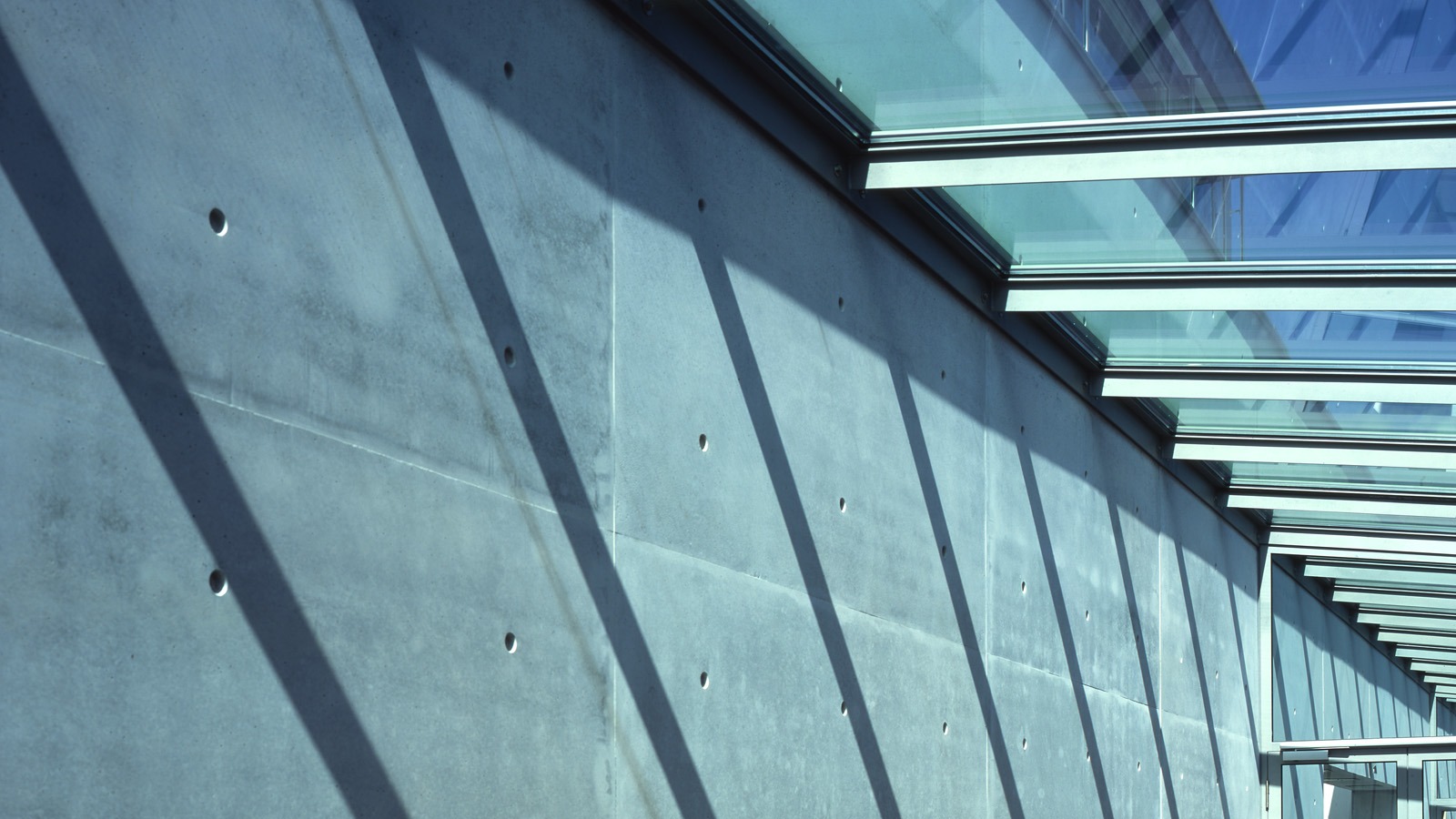 Eine durchgehende Sichtbeton-Wandscheibe als Rückgrat des Baukörpers bildet äußerlich wie intern eine klar erkenntliche Orientierungsachse, die zwischen den verschiedenen Höhen der Nutzungseinheiten vermittelt und an der sich alle Funktionen anlehnen.