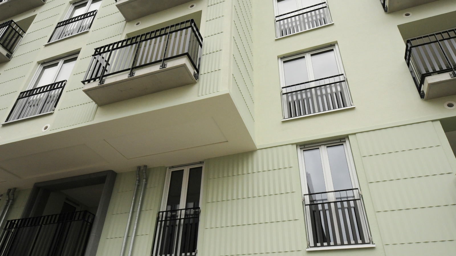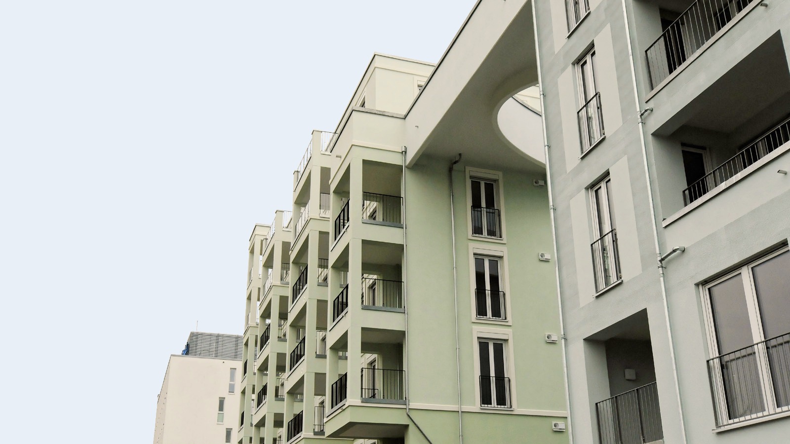 Der 1. Bauabschnitt besteht aus 6 konstruktiv und brandschutztechnisch abgetrennten Einzelhäusen als Geschoßwohnungsbau mit 7 Stockwerken (E+6) und 127 Wohneinheiten, sowie einer alle Häuser unter dem begrünten Innenhof verbindenden Unterkellerung als 2-geschoßigen Großgarage mit ergänzenden Nebenraum-/Lagerflächen.